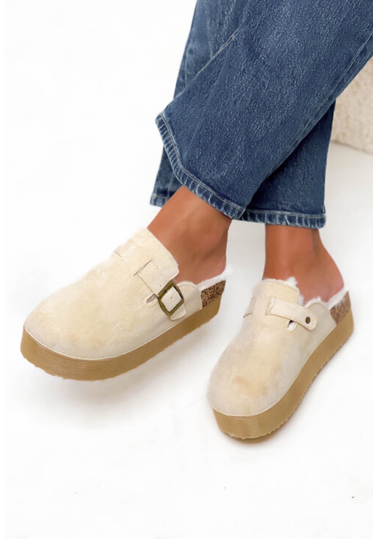 Mule plate-forme fourrees crème